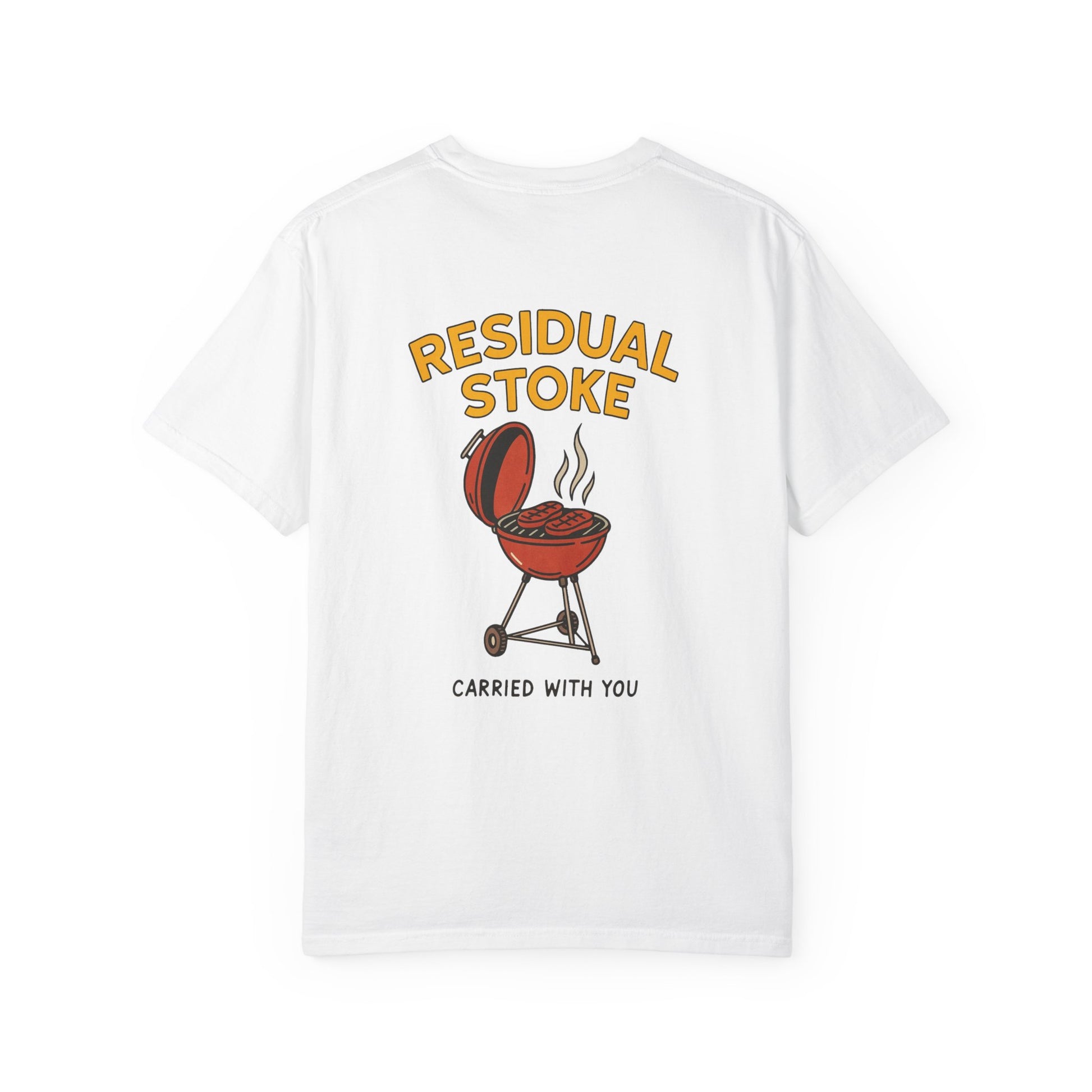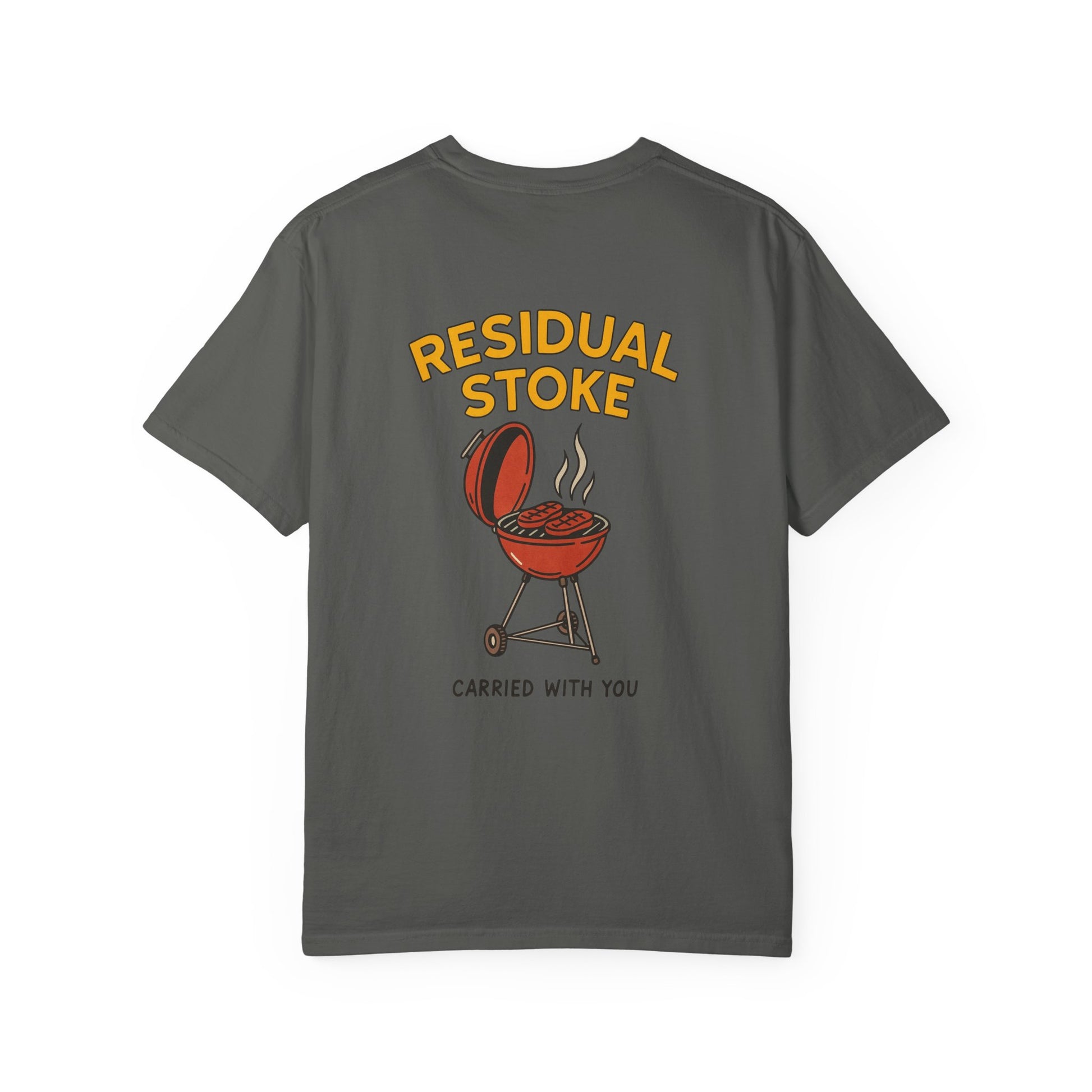 Carry the warm, post-grill glow with you. This garment-dyed tee feels broken-in from day one — soft, slightly lived-in cotton that drapes with a relaxed fit. A small chest mark keeps the front clean and understated; the back shows a playful, hand-drawn kettle grill. It reads like a memory: late light, laughter, the scent of smoke clinging to your jacket. Wear it to backyard cookouts, tailgates, or weekend runs to the hardware store. It pairs easily with faded denim, work shorts, or a favorite flannel tied at the waist. Built to age gently, the tee keeps its color and structure through repeat wear and wash — the more you live in it, the more the story becomes yours.